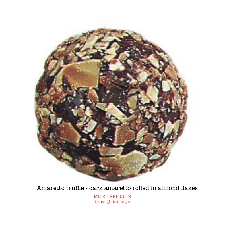 Dark Amaretto chocolate rolled in almond flakes.