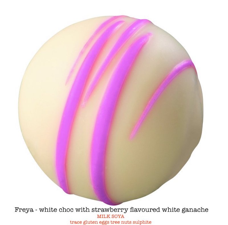 White chocolate with strawberry flavoured ganache.